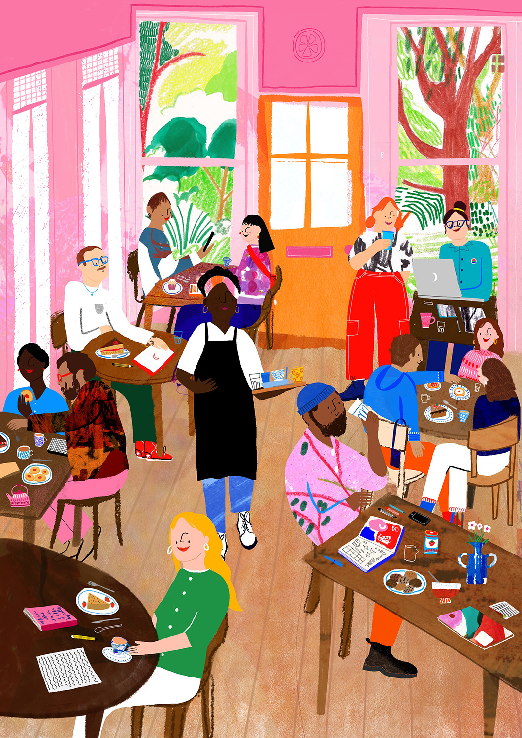 Fay Troote is an illustrator based by the coast in Brighton. Her work is characterised by its ability to bring emotions and stories to life through unique visual narratives that celebrate the wonders of our world. Often inspired by the natural world, Fay uses vivid colours, intricate mark making, and senses of scale to create charming imagery that captures the essence of adventures, both big and small. Fay’s work skilfully strikes a delicate balance between positivity and sensitivity, revealing her emphasis on the interconnectedness between people, place, nature, and well-being.