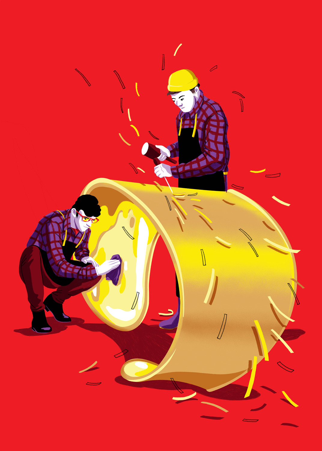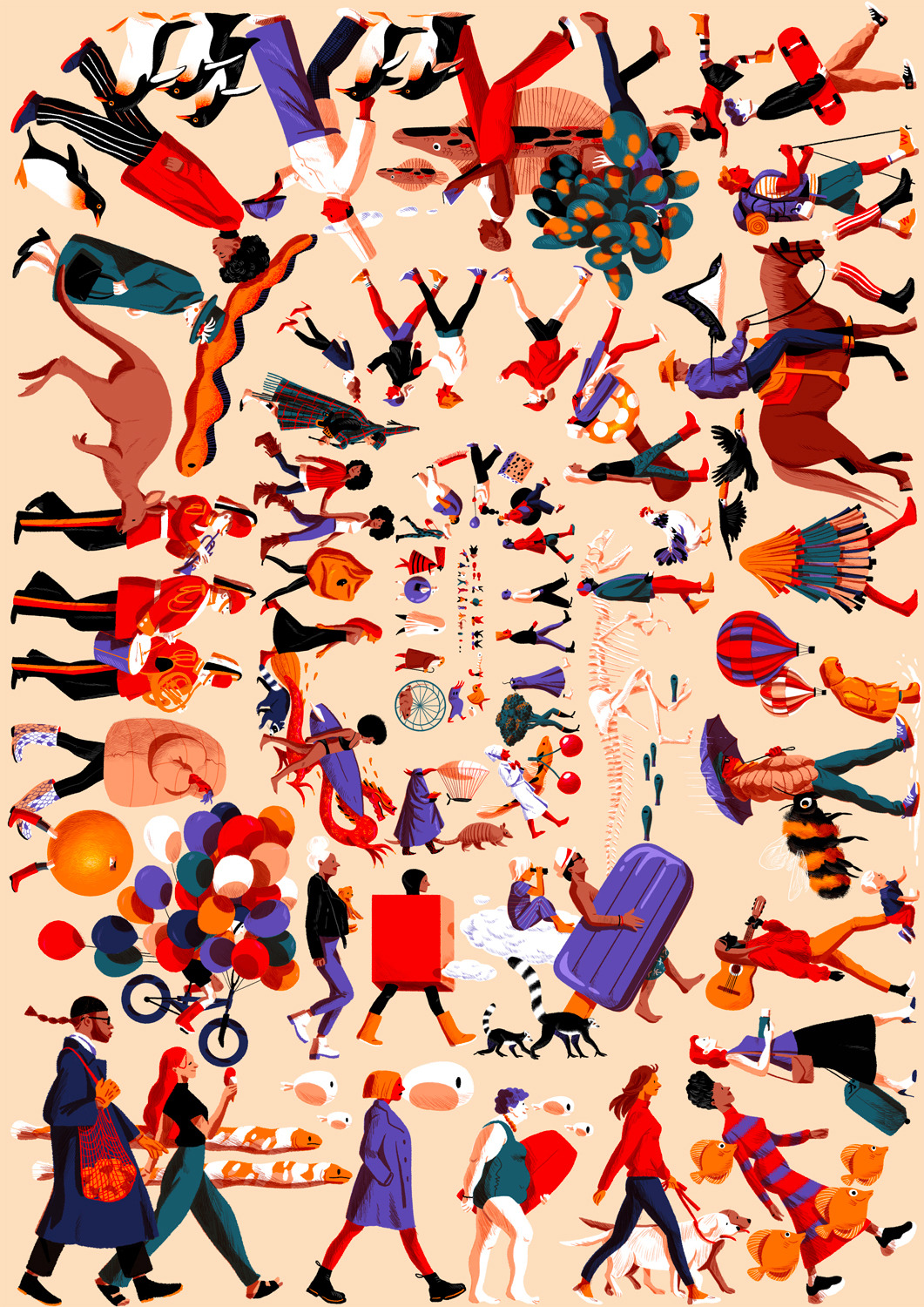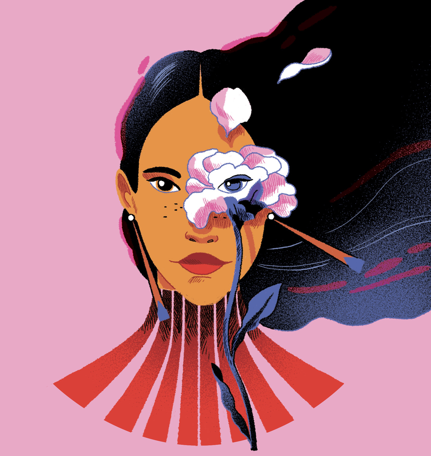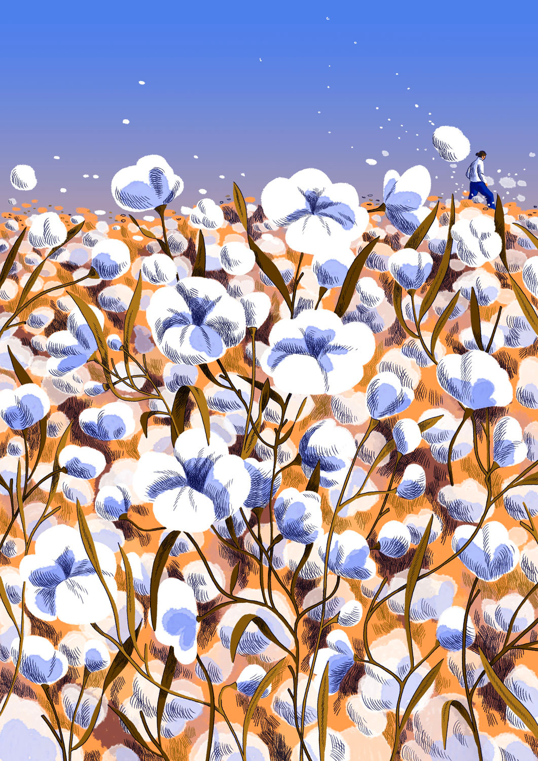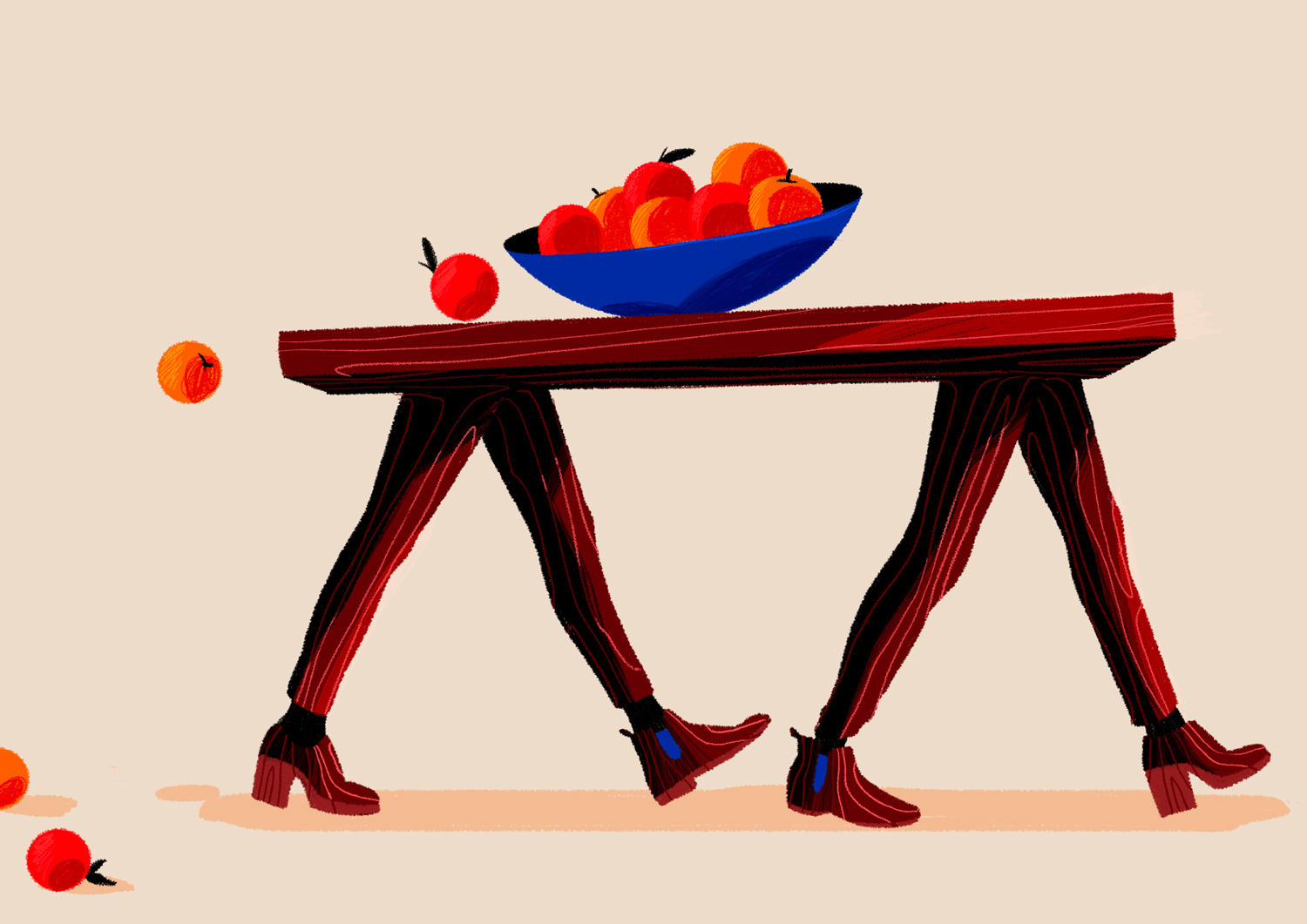 She creates quiet illustrations where the viewer can momentarily immerse themselves in a rectangle of tranquillity. Her style is characterised by the use of bright and vibrant colours, inspired by nature and architectural settings – large architectural structures, urban landscapes, lush jungles, unusual plants, refined textiles, and well-furnished rooms heavily influence her visual world.