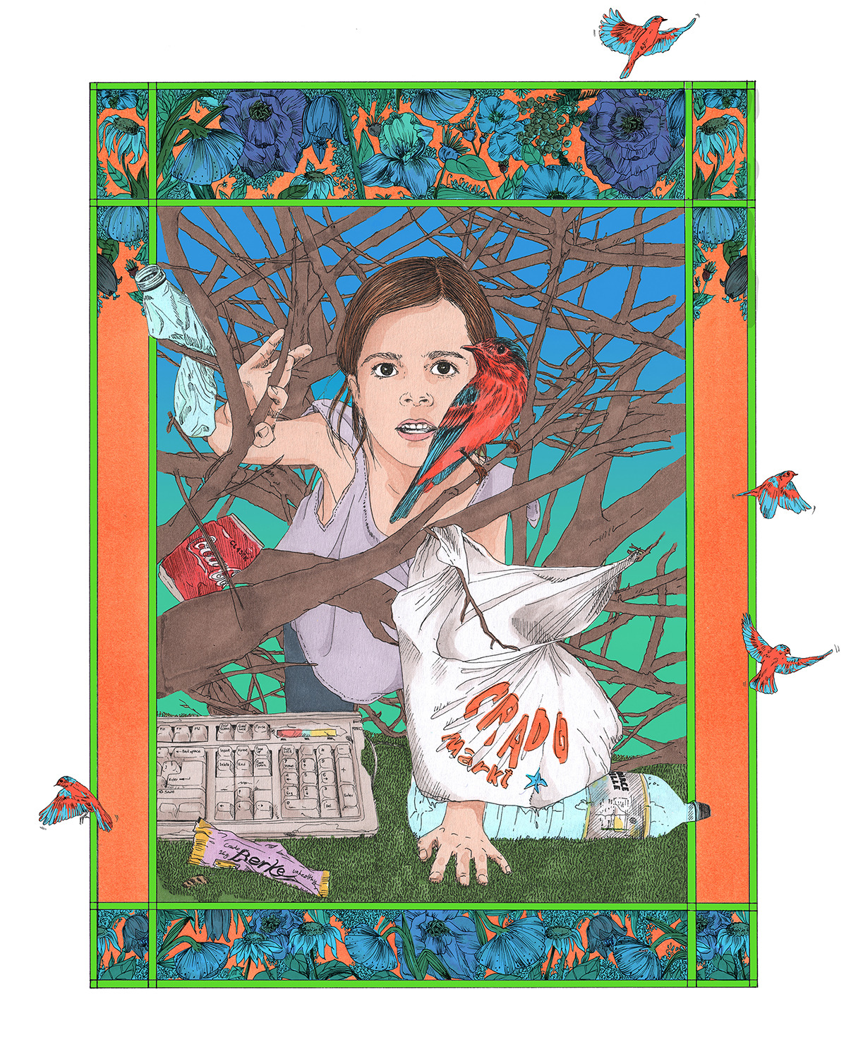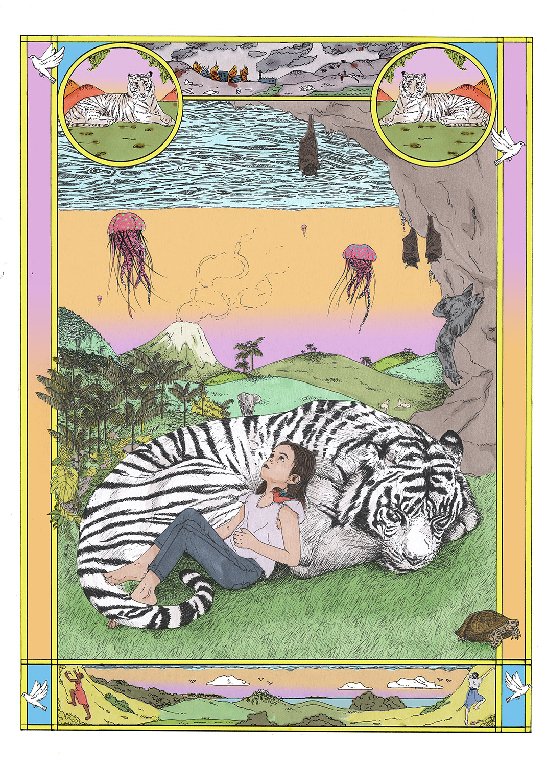 Virginie Garnier is a french illustrator who graduated from L’ école des Beaux Arts in France and studied Photography, and then Fashion at the Royal Academy of Antwerpen, Belgium. Through the years, she has created a signature style with her pencil drawings creating an unusual and erotic universe, filled with a surprising mixed bag of elements; hot chicks, celebrities, animals and unexpected scenes always represented with a delicate hand and a hyper realistic technique. She is currently living and working in Berlin.
